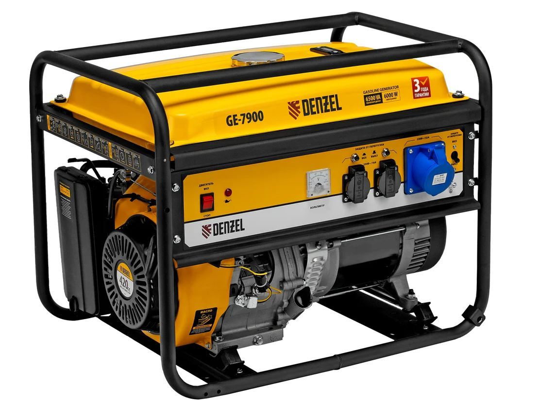 Бензиновый генератор 6,5 кВт, 220В/50Гц, 25 л DENZEL GE 7900 94638 представляет собой классический вариант для поддержания работоспособности производственного оборудования, торговой точки или небольшого дома. Благодаря трем розеткам с различной силой тока на каждой, модель подойдет для широкого спектра задач.