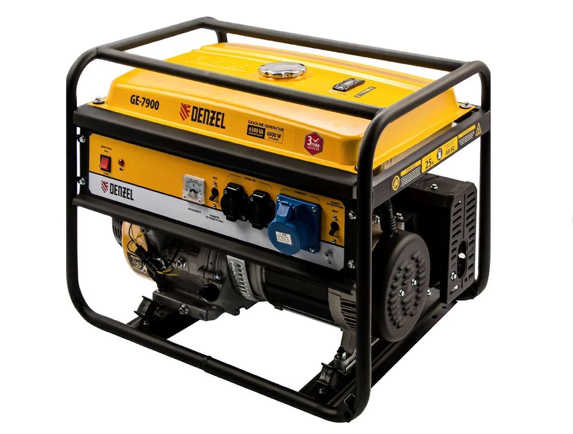 Бензиновый генератор 6,5 кВт, 220В/50Гц, 25 л DENZEL GE 7900 94638